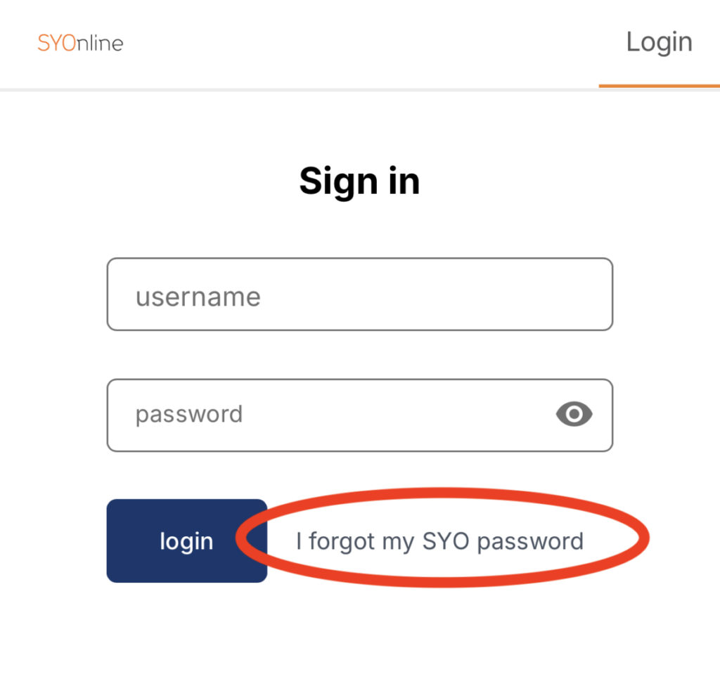 1. To set your password for the first time please select ‘I forgot my SYO password’ underneath the login button.