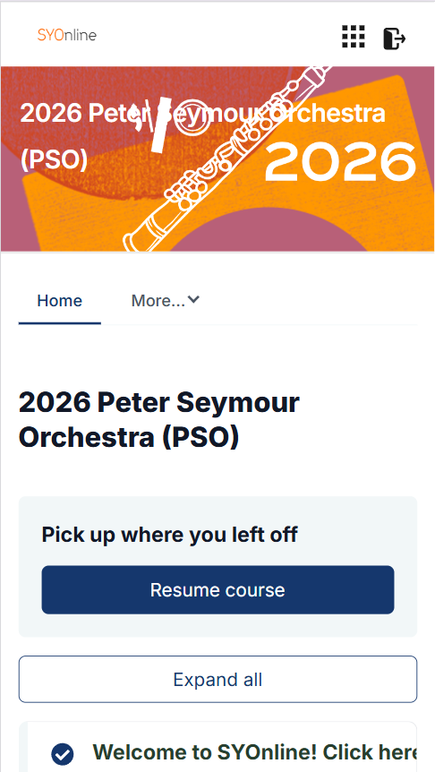 Once you are logged in you will see the SYOnline dashboard. It will have tiles for each course you are enrolled in.